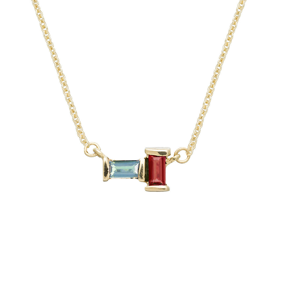 L'unione delle pietre acquamarina e granato come quella tra terra e acqua, io e te (Tu y Yo). Questa collana aggiunge un tocco di eleganza a qualsiasi look! Consigliamo di indossare il gioiello insieme ad altre collane della collezione Pura per un effetto vivace e minimal al tempo stesso.