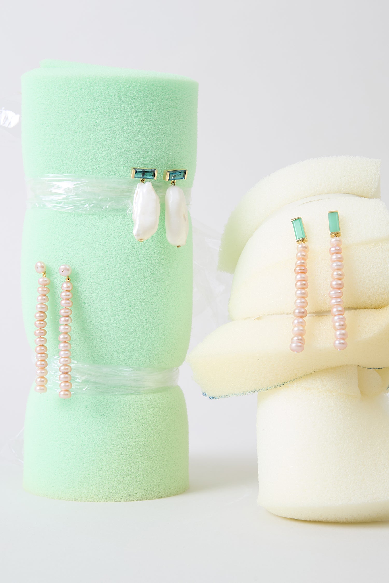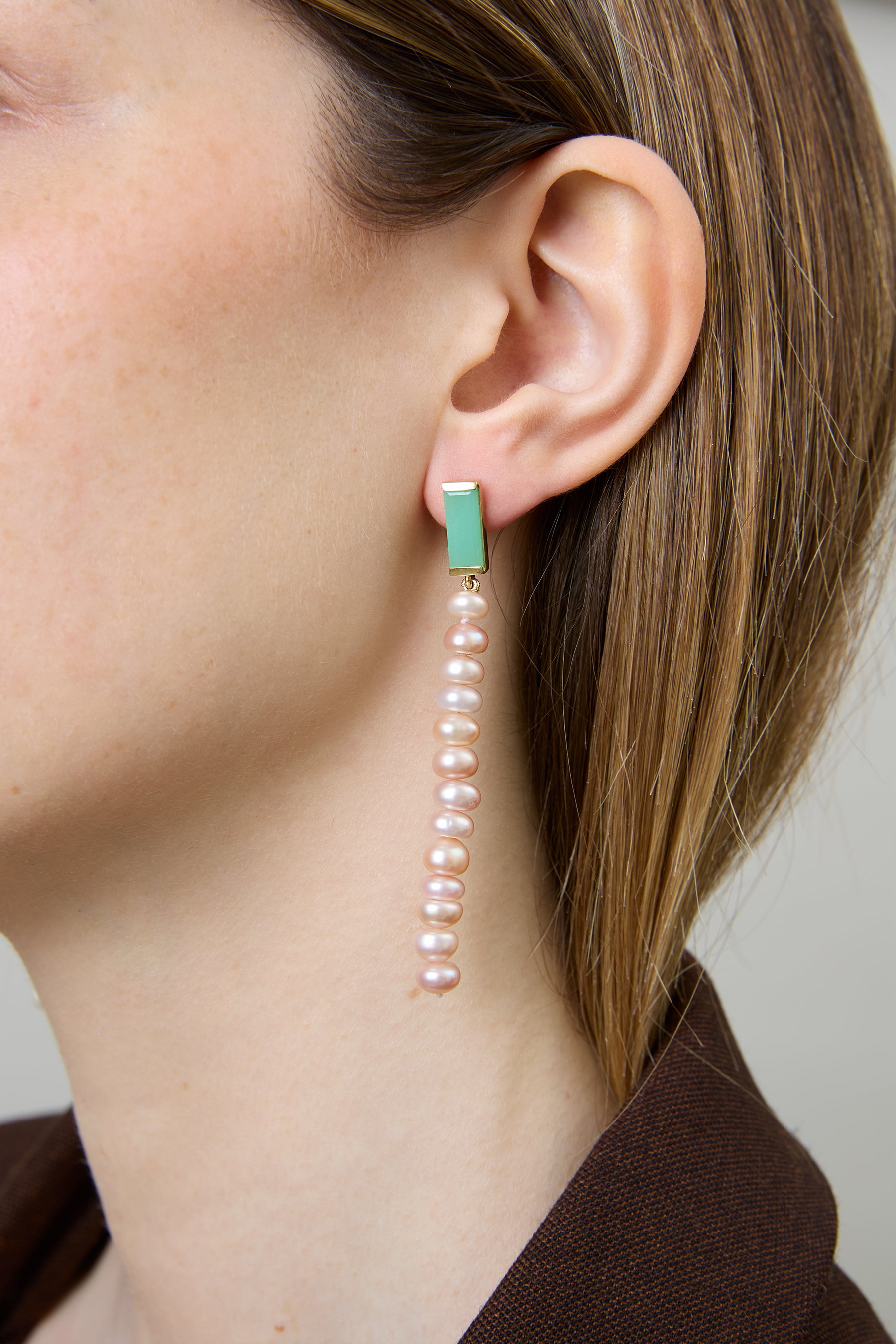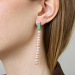 Deco Maxi Baguette Perla earrings are the perfect blend of elegance and effortless charm. Featuring striking maxi baguette-cut chrysoprase stones set in yellow gold, paired with a delicate cascade of soft pink pearls, these earrings capture the serene beauty of the sea with a chic, modern twist. Designed to elevate any look with a playful yet sophisticated spirit, they’re your go-to for moments when you want to shine—day or night.