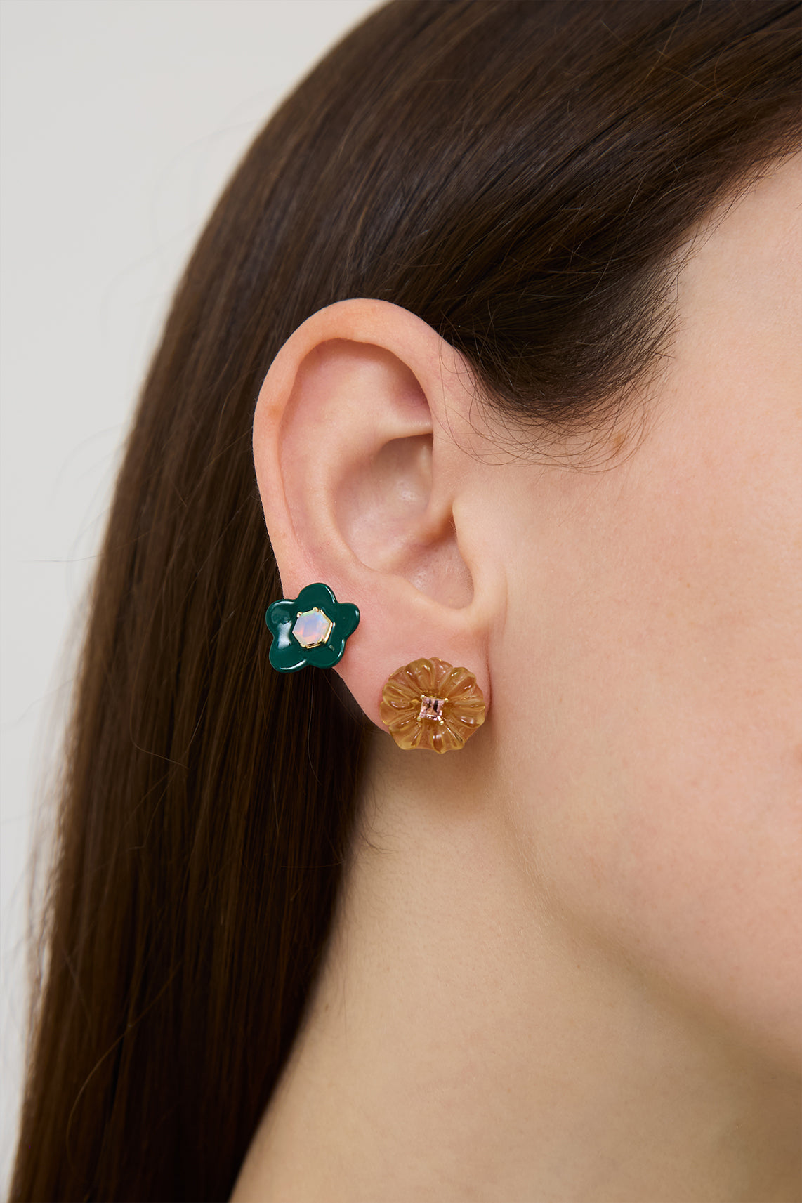 Soft as light shimmering through summer leaves, these hand-carved citrine flower earrings carry a subtle luminosity. Each delicate citrine gemstone is shaped by skilled artisan hands, celebrating the natural beauty of this translucent stone. At the centre of each bloom, a carré-cut pink tourmaline introduces a flush of rose.