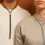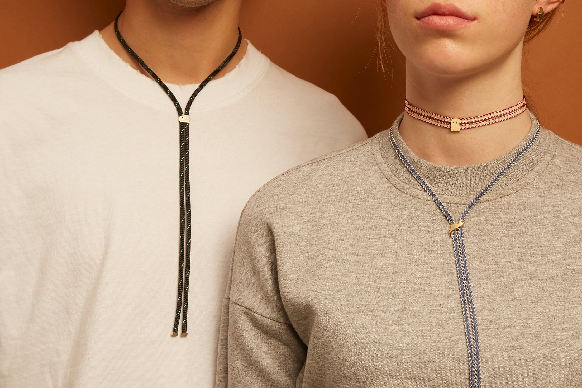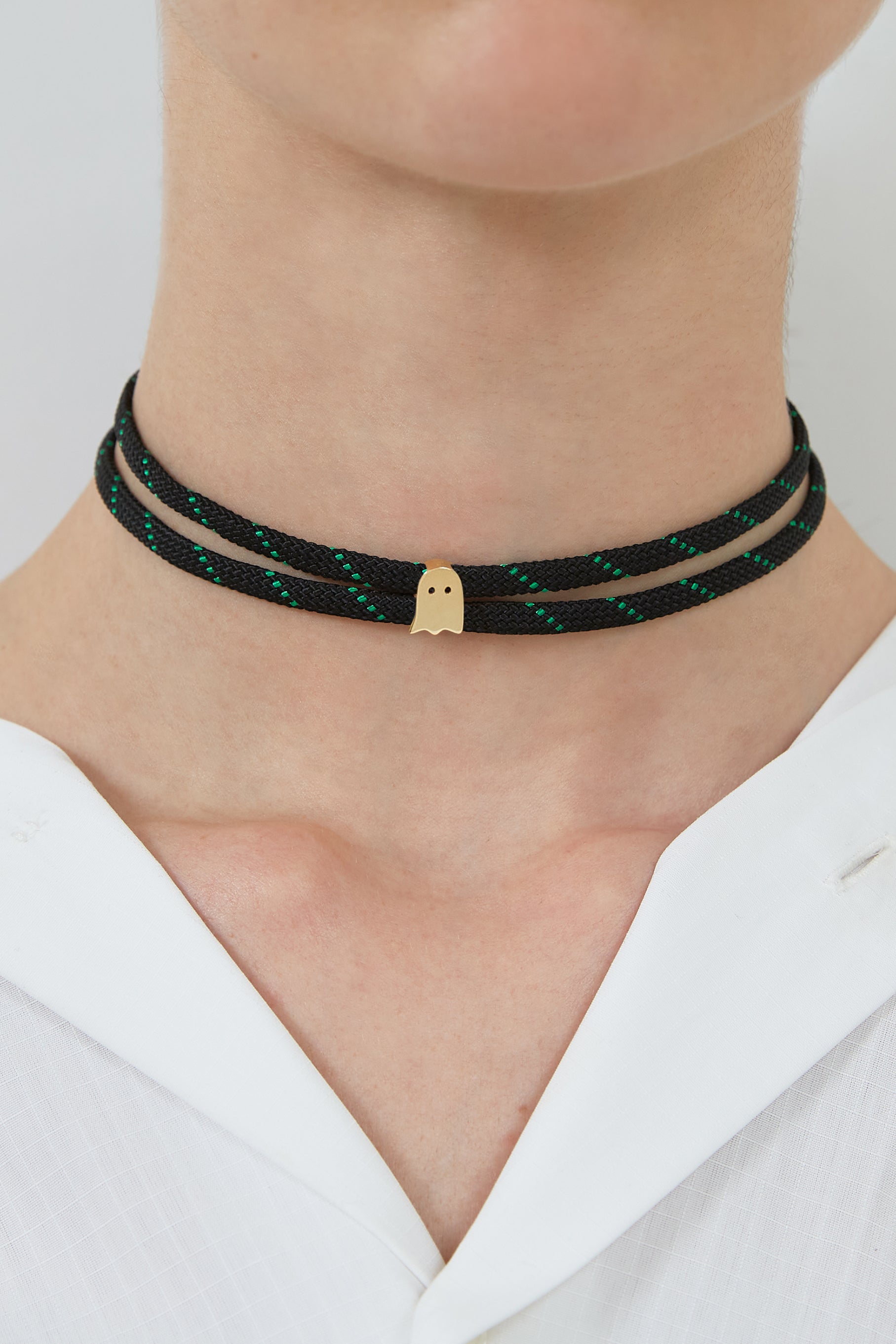 For Halloween night or whenever you feel spooky! Transform your look with our versatile gold Fantasma Scout ghost necklace. This adjustable cord necklace can be worn as a choker, bolo tie, or even as a stylish bracelet by simply wrapping the cords twice around your wrist.