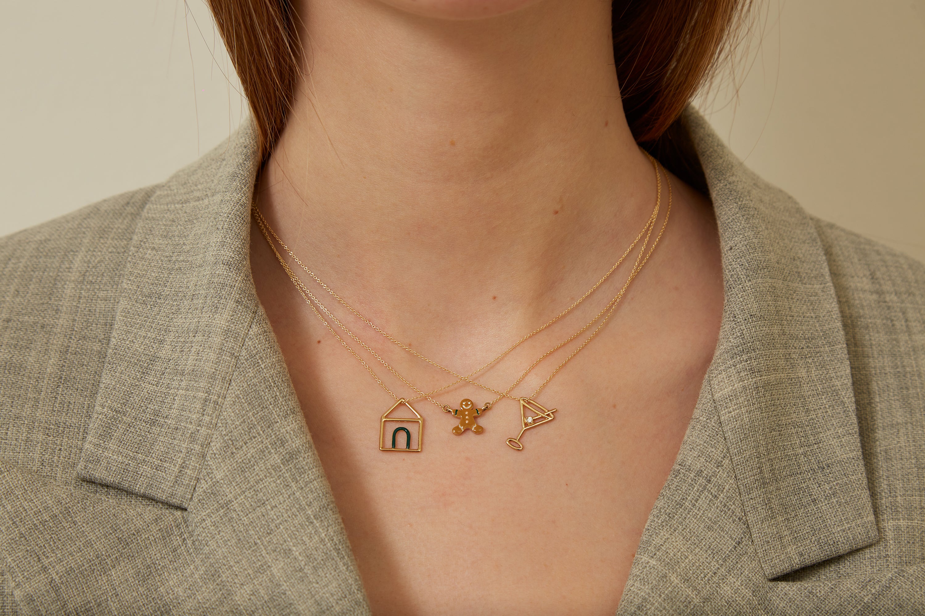 Material: 9kt yellow gold, Hand-painted in caramel brown, bottle green and strawberry pink enamel
