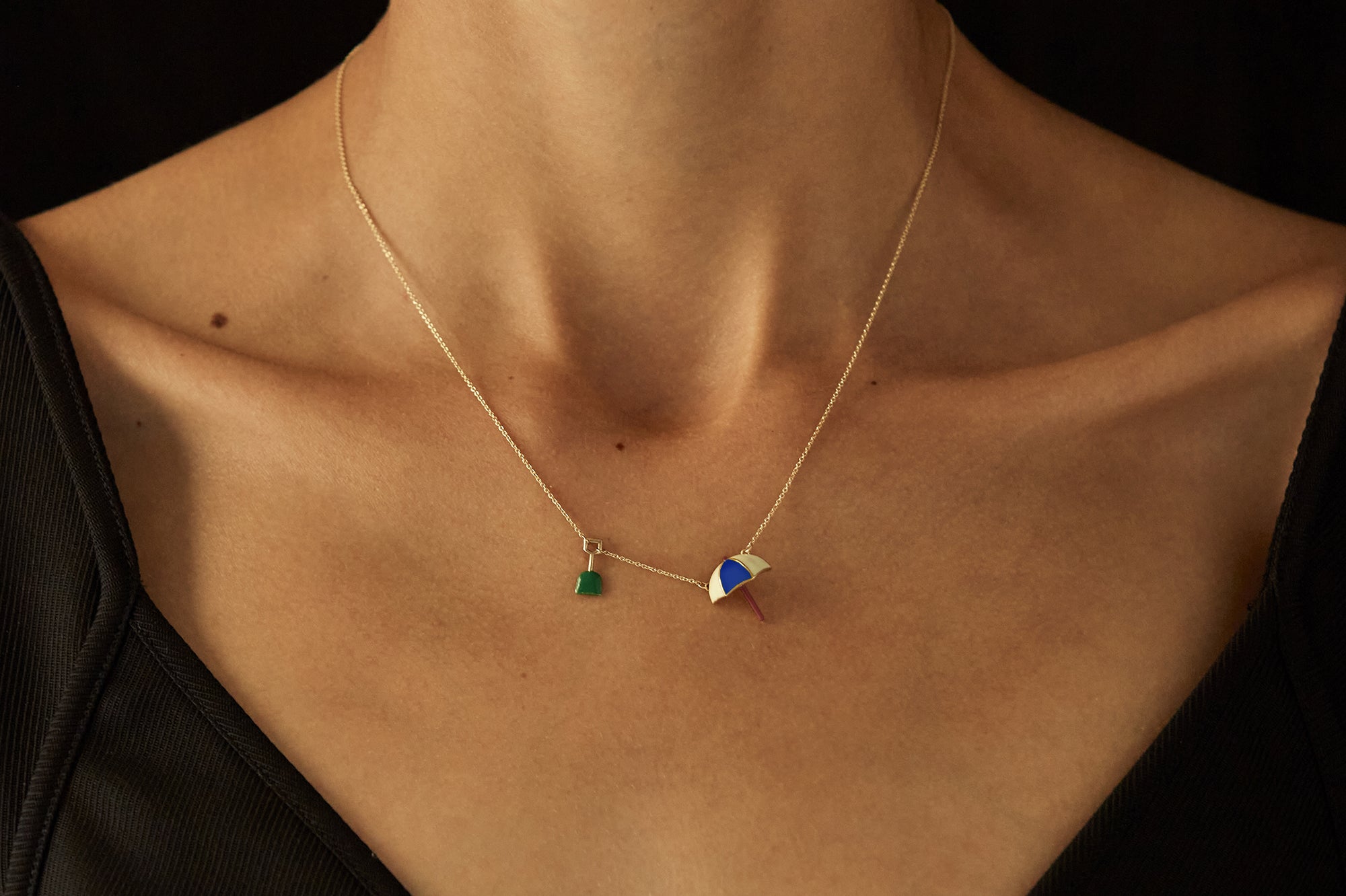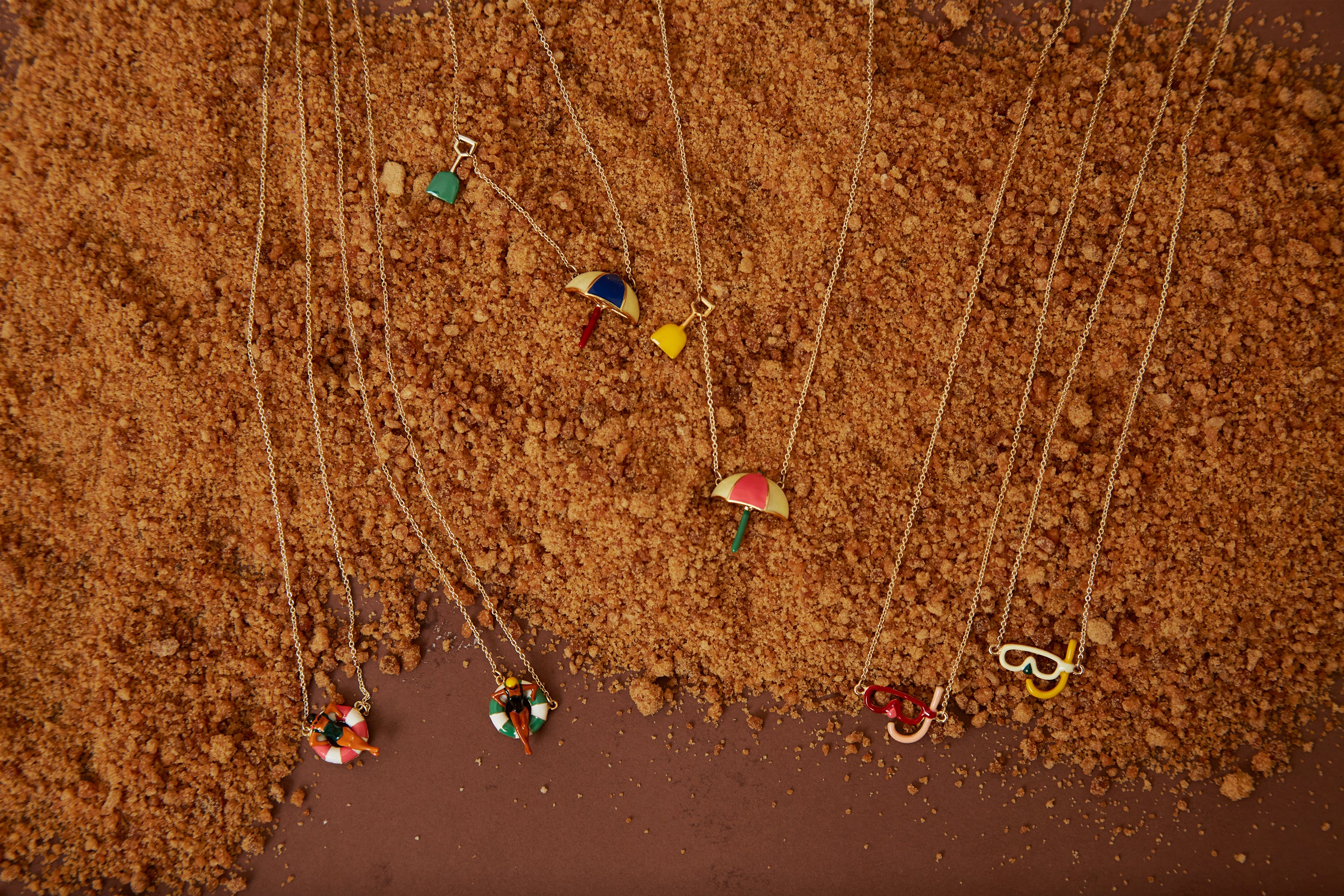 Our Sombrilla Paletta necklace (beach umbrella with sand shovel) is the ideal accessory for beach lovers. Wear it to bring the sun on cloudy days!