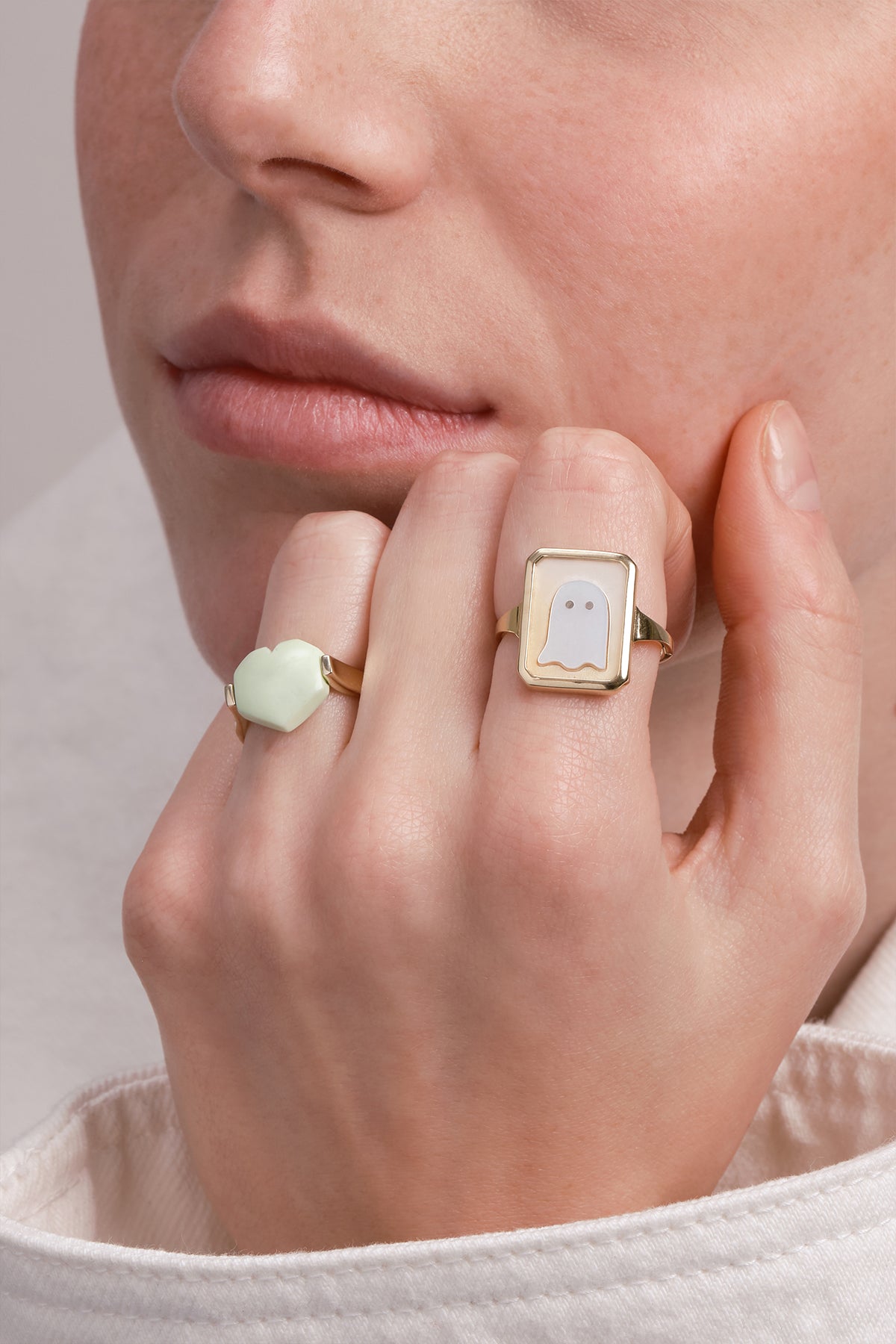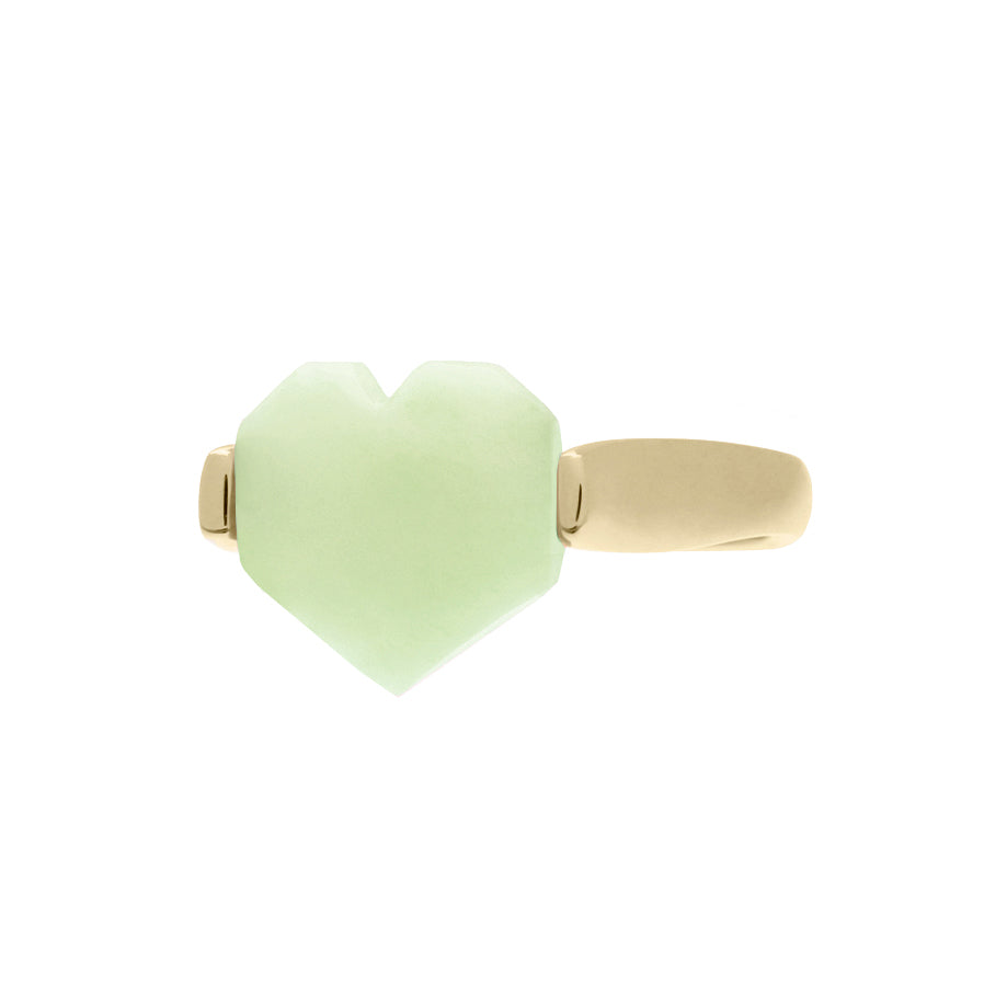 Corazón ring captures the essence of modern elegance with a tender twist: a sleek gold band adorned with a heart-shaped chrysoprase in a luminous mint green. Clean yet expressive, its sculptural simplicity lets the vibrant stone take center stage, adding a fresh and refined pop of color. Delicate but full of personality, it’s perfect worn alone or stacked for a more playful look.