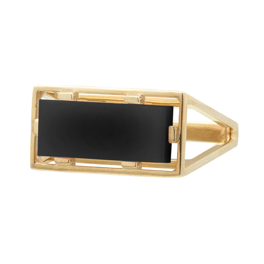 9kt yellow gold ring with natural black agate stone (stone dimension: 17mm x 7mm / 3mm height)