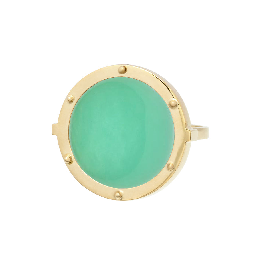 Oblò ring with chrysoprase is available exclusively on aliita.com.