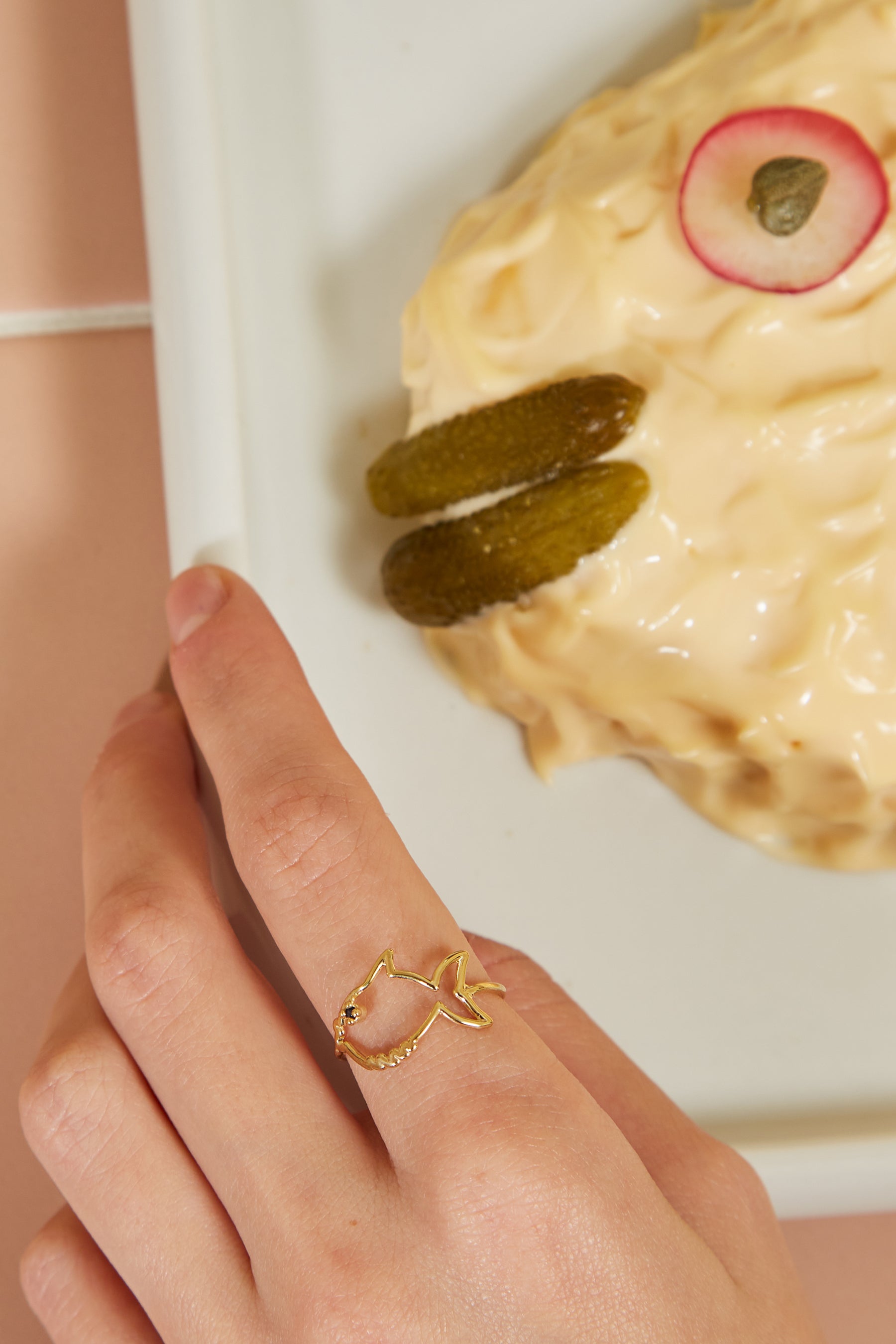 Take a swim with the Pececito Zafiro Azul! This little fish has a precious eye made of blue sapphire.